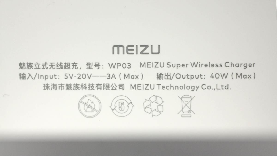 包装盒为白色,设计也比较简洁,正面印有MEIZU品牌、无线充外观和名称。
