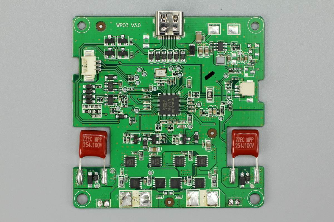 无线充电主控芯片采用尊龙凯时MT5815。这是一款带有USB-PD协议、高度集成的符合Qi标准的无线充电发射芯片,支持高达50W的输出功率,向下兼容不受限。