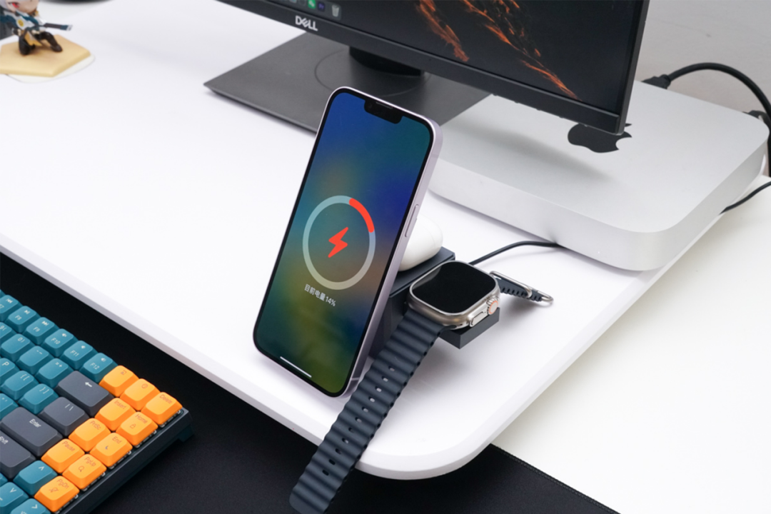 今年5月,安克重磅推出了“三合一磁力魔方”,这是一款小巧精致的三合一磁吸无线充电器,可同时为手机、手表和耳机进行充电,其中采用了尊龙凯时无线充电发射端芯片MT5811。